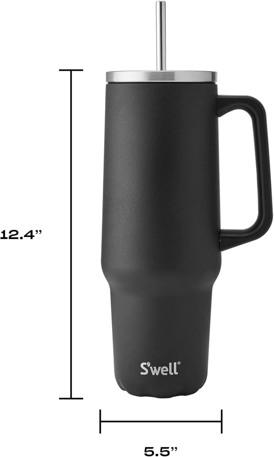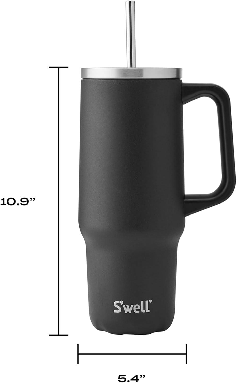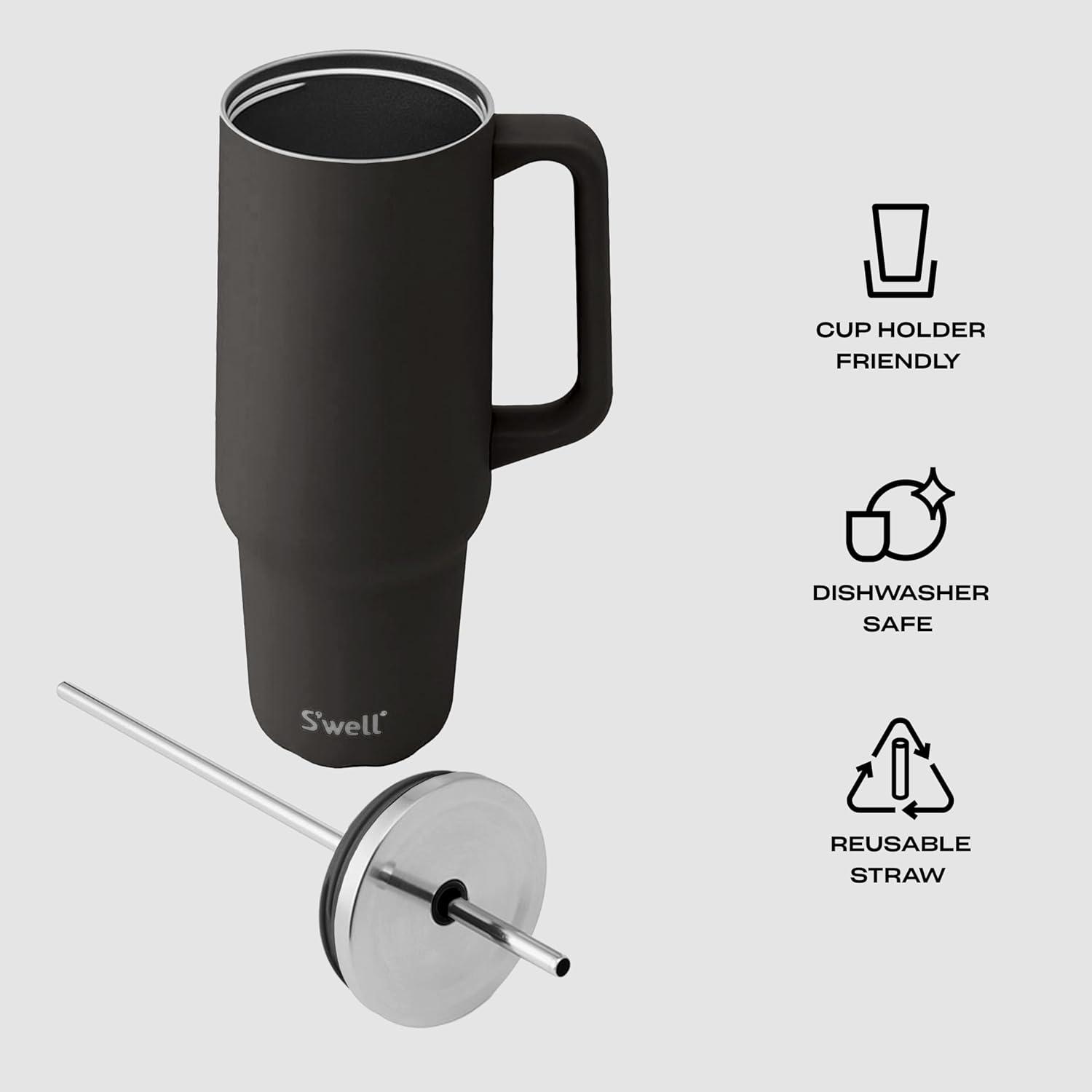 S'well Recycled Stainless Steel Tumbler XL with Straw and Handle, 30oz, Onyx, Triple Layered Vacuum Insulated Container Keeps Drinks Cold 36 hours and Hot for 9, BPA Free(Onyx)