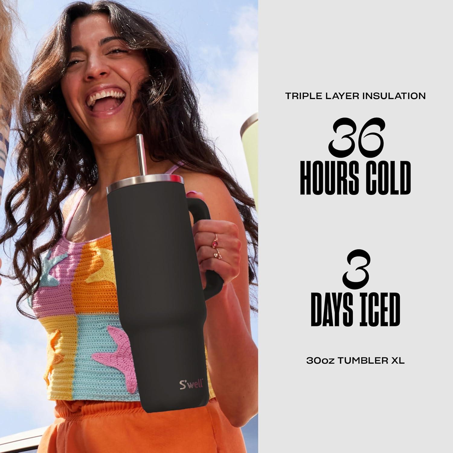 Get up to 70% off on S’well Recycled Stainless Steel Tumbler XL with Straw and Handle, 30oz, Onyx, Triple Layered Vacuum Insulated Container Keeps Drinks Cold 36 hours and Hot for 9, BPA Free(Onyx) styles during our end-of-season clearance event.