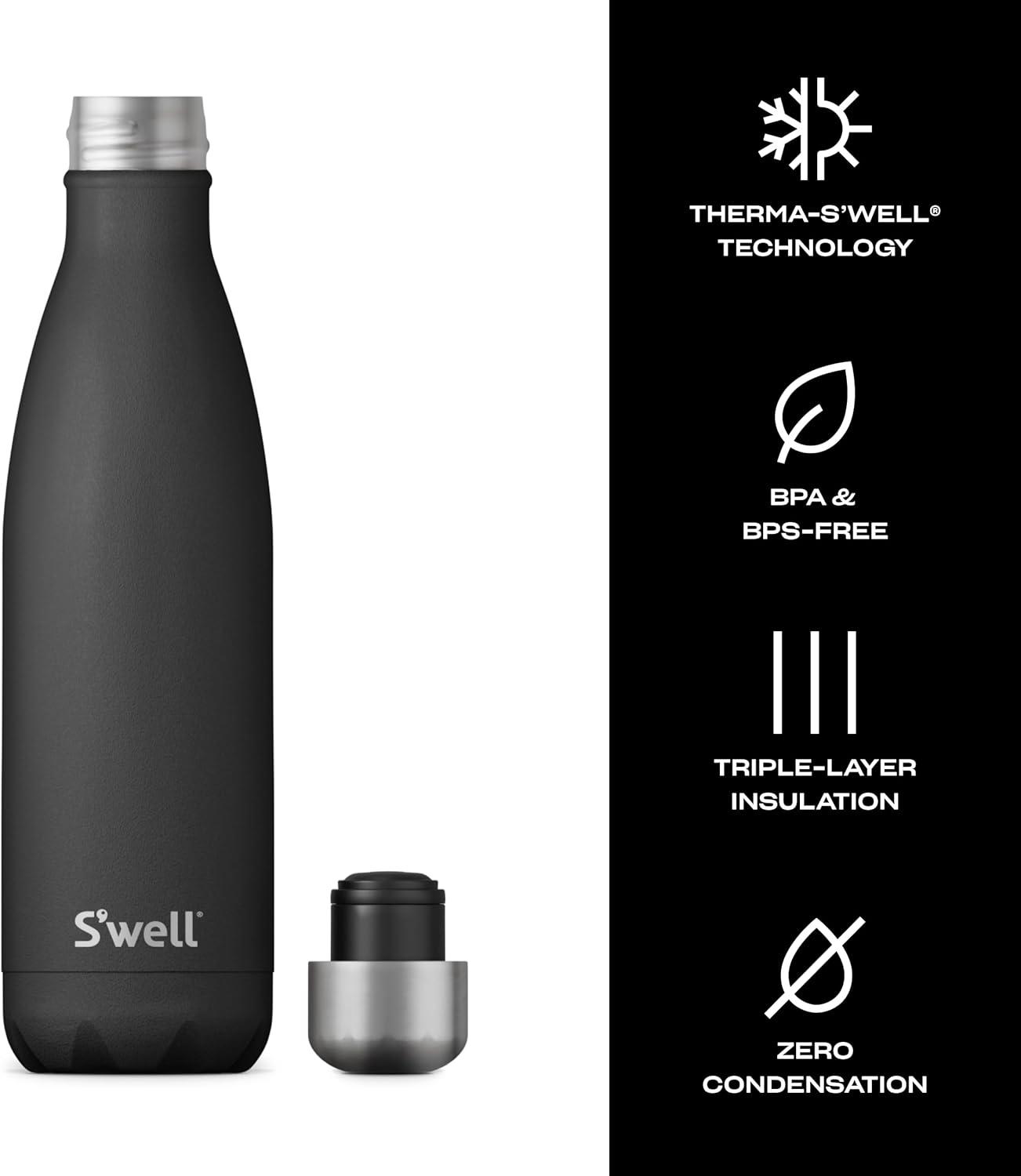 S’well Stainless Steel 17oz Water Bottle, Onyx Black, Triple-Layer Vacuum Insulated for 36 Hours Cold, 18 Hours Hot, BPA-Free, Durable and Portable(Onyx)