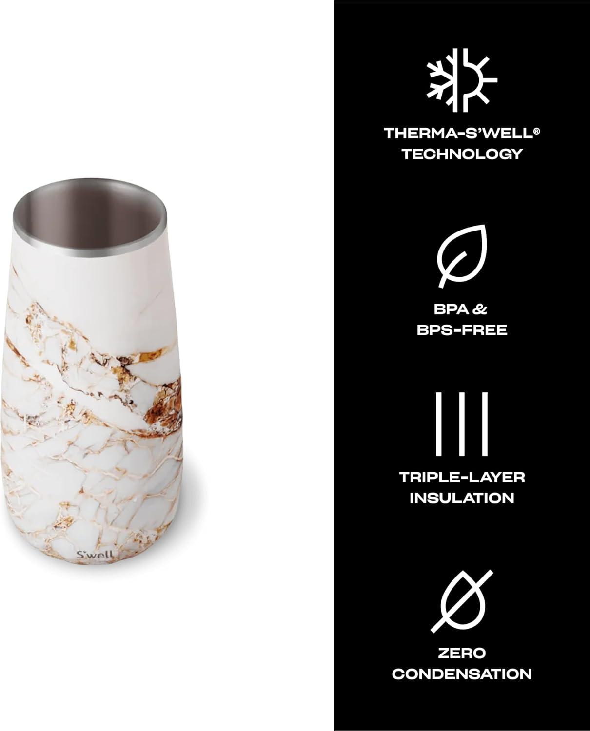 S’well Stainless Steel Champagne Flute, 6oz, Teakwood, Triple Layered Vacuum Insulated Container Keeps Drinks Colder for Longer, BPA Free Barware(Calacatta Gold)