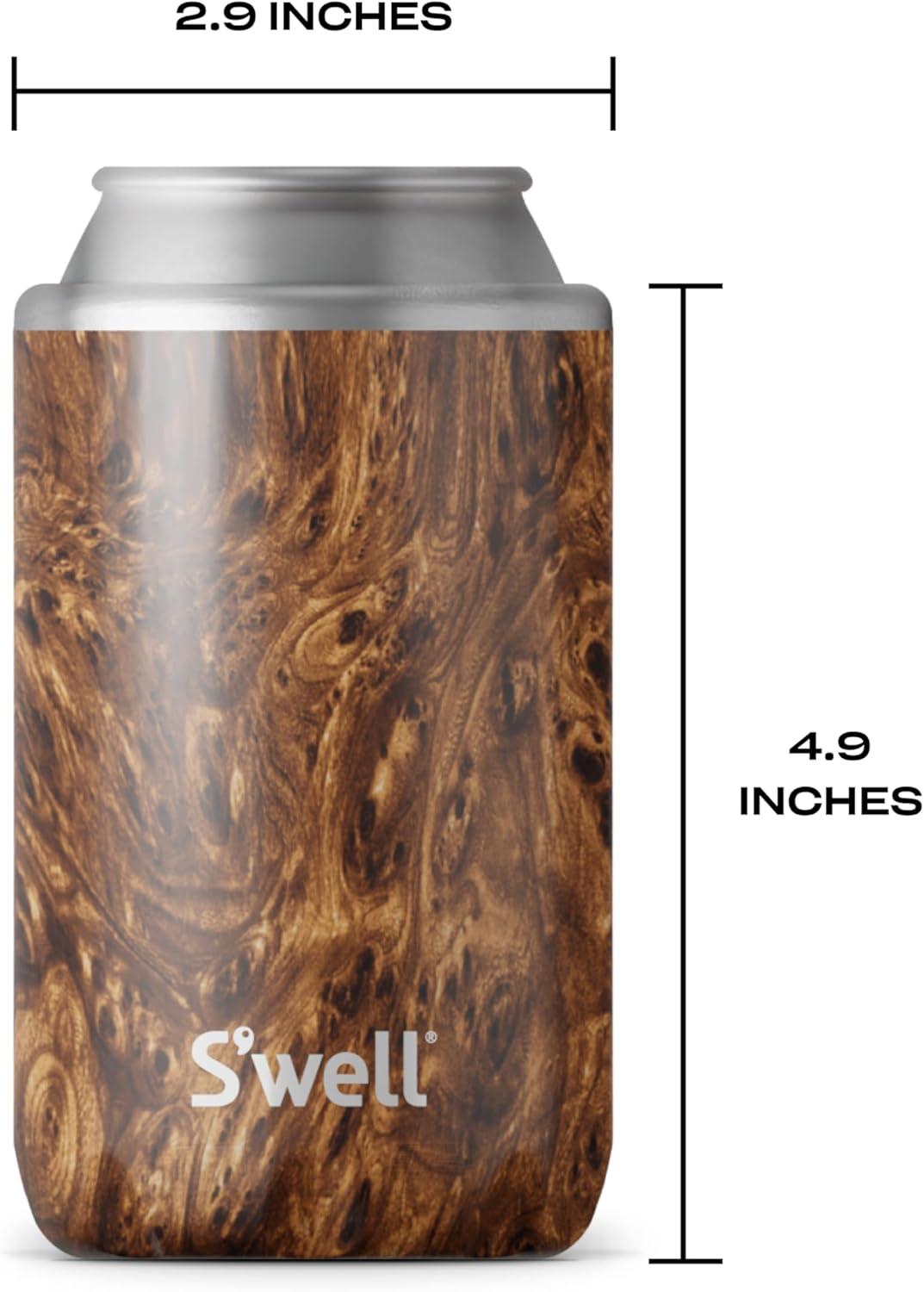S’well Stainless Steel Drink Chiller, Fits 12oz Cans and Bottles, Teakwood, Triple Layered Vacuum Insulated Container Keeps Drinks Cold for Up To 6 Hours, BPA Free(12 oz)