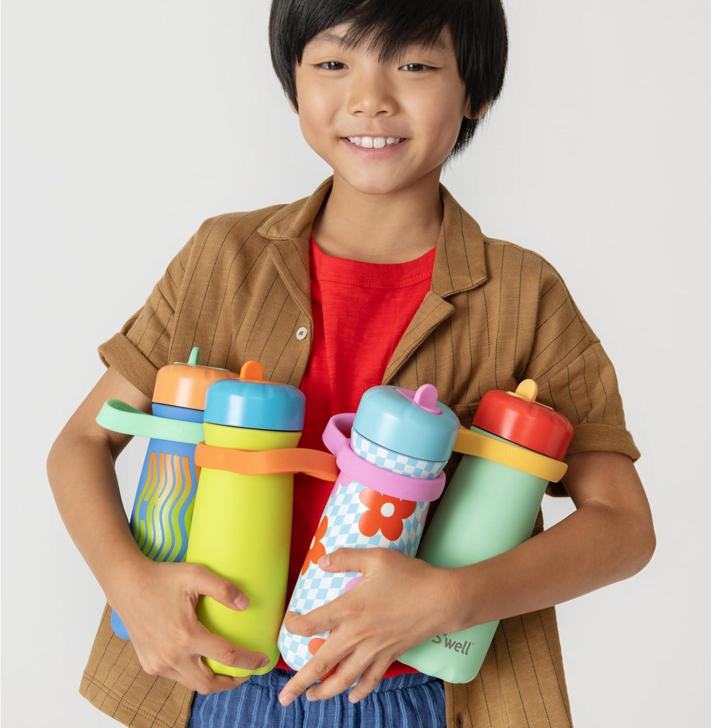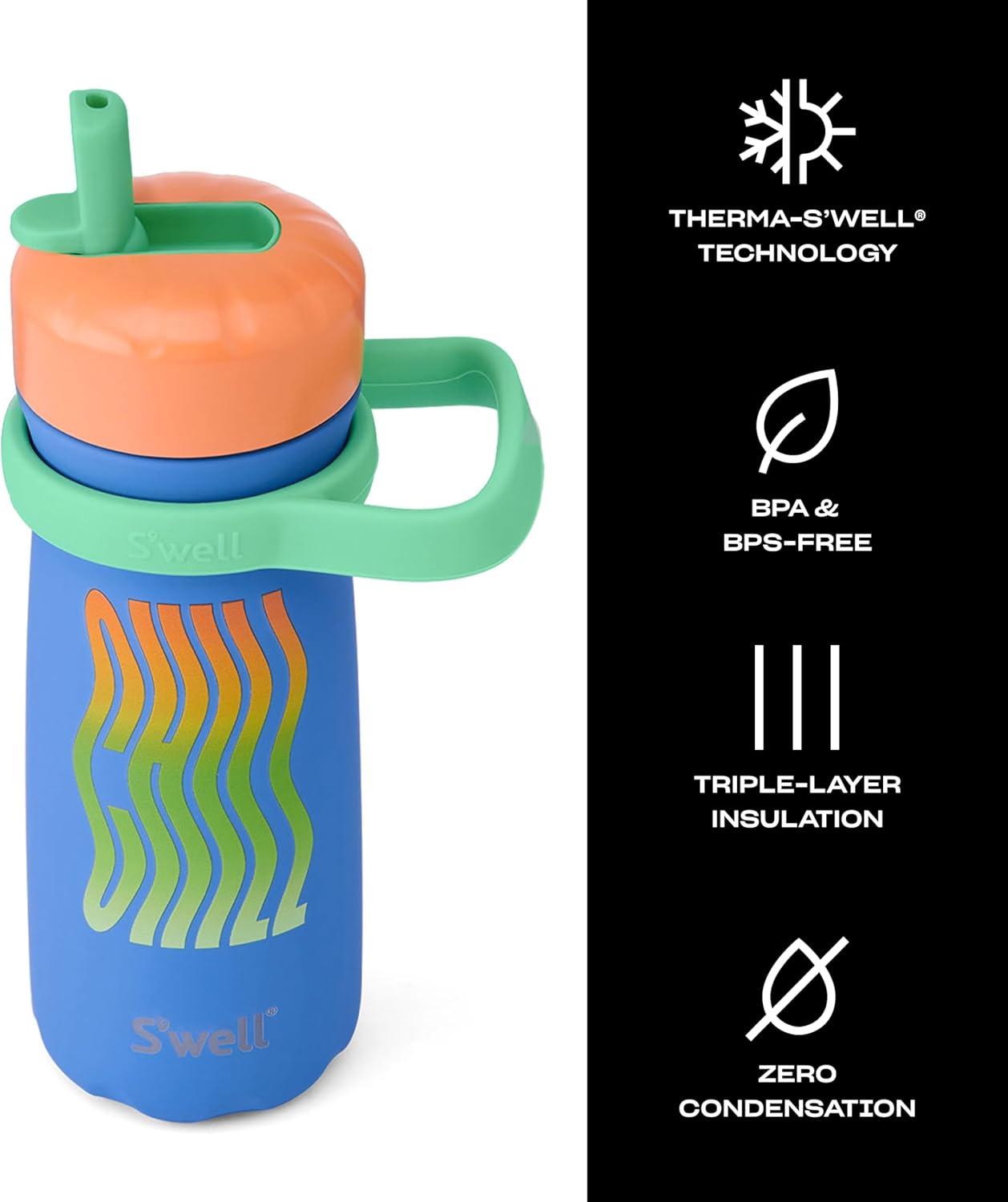 TRIPLE-LAYERED INSULATION: S’well 16oz Kids Traveler with stainless steel and Flip Straw Lid. Triple-layered, vacuum-insulated construction. Therma-S’well Technology keeps beverages cold for 24 hours.