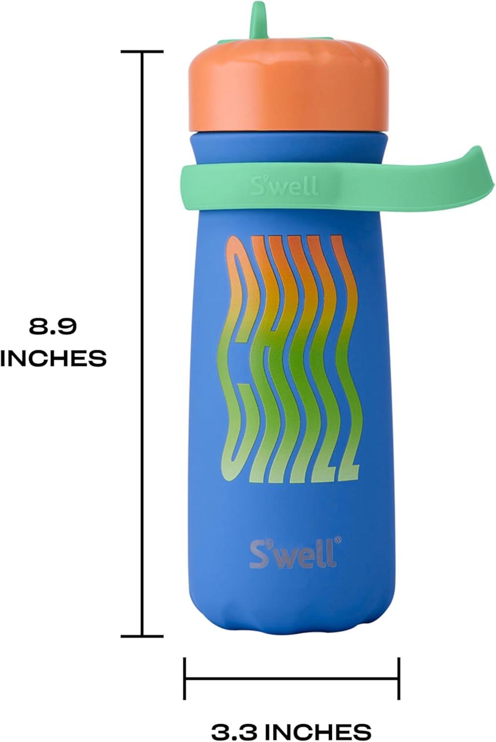 S’well Stainless Steel Kids Traveler with Flip Straw Lid, 16oz, Lime Sherbet, Triple Layered Vacuum Insulated Containers Keeps Drinks Cold for 24 Hours, BPA Free, Easy Carrying On the Go(Blue Chill)