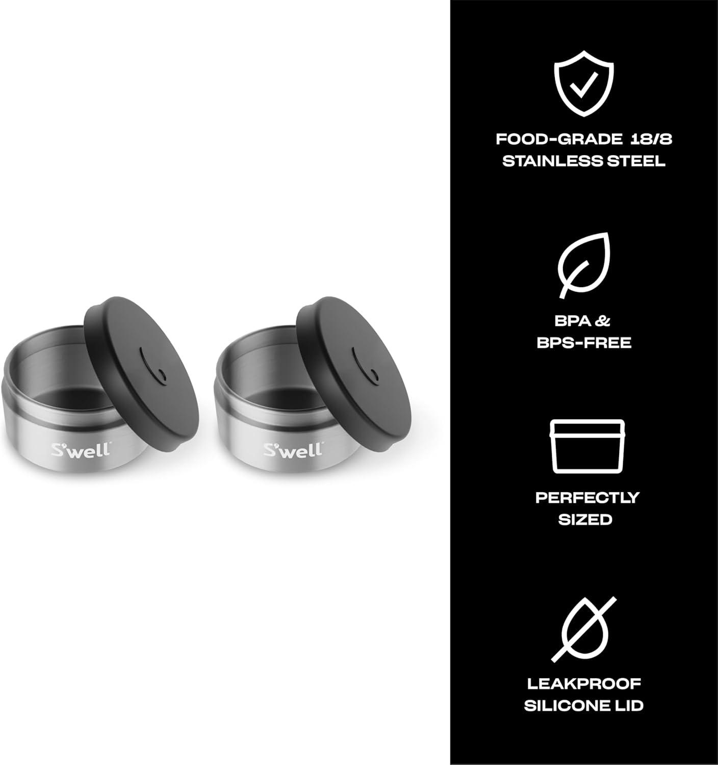 S’well Stainless Steel Mini Canister Set of Two, 2oz, Pink And Mauve Pyrite, Single Walled Durable Construction, Leakproof Silicone Lids, Dishwasher Safe(Black)