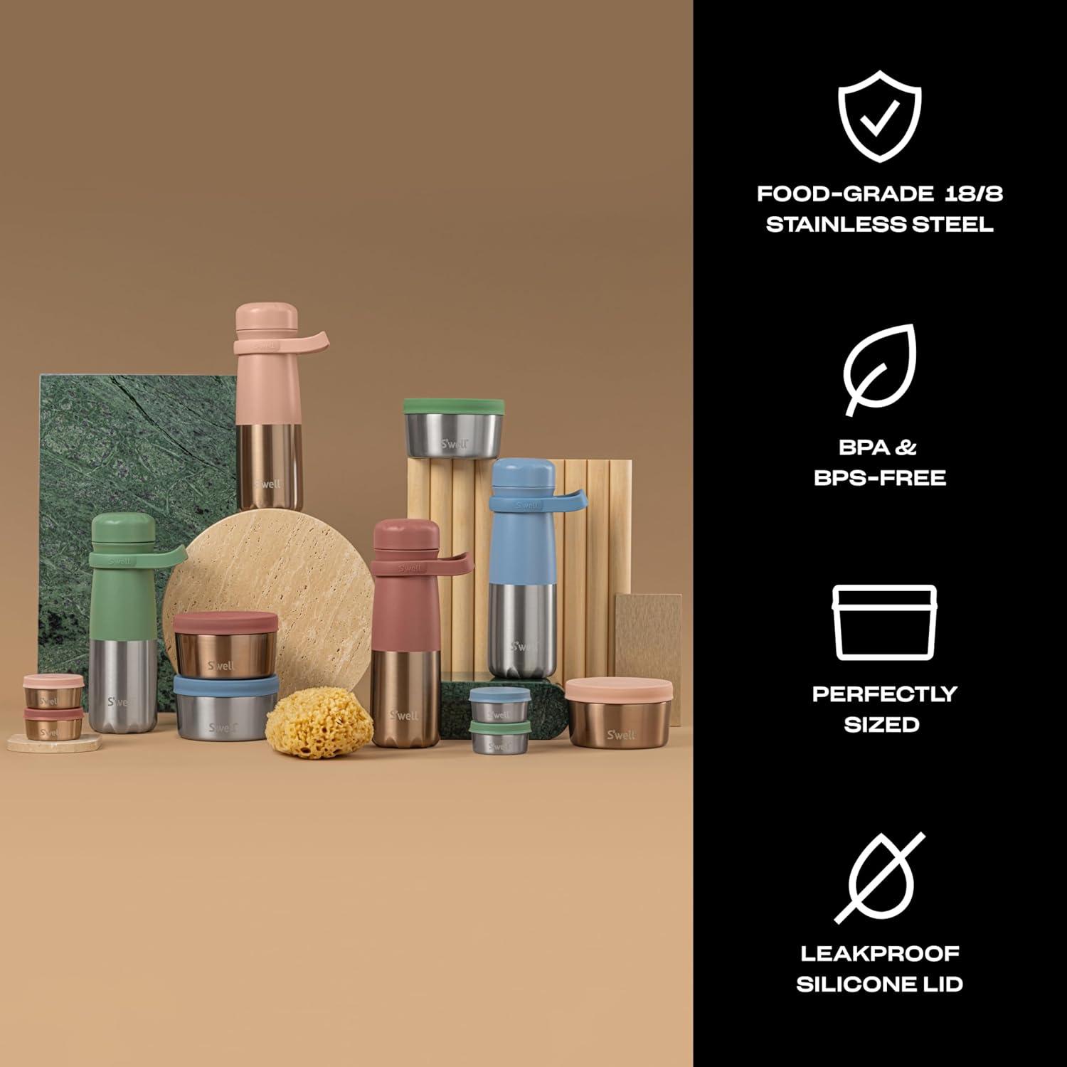 S’well Stainless Steel Mini Canister Set of Two, 2oz, Pink And Mauve Pyrite, Single Walled Durable Construction, Leakproof Silicone Lids, Dishwasher Safe(Sky/Matcha Silver Lining)
