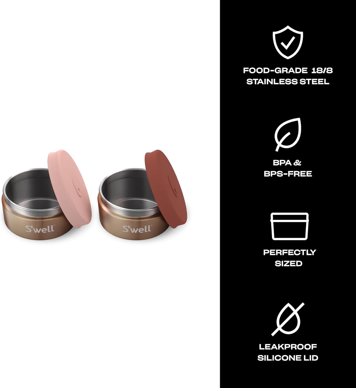 S'well Stainless Steel Mini Canister Set of Two, 2oz, Pink And Mauve Pyrite, Single Walled Durable Construction, Leakproof Silicone Lids, Dishwasher Safe(Pink/Mauve Pyrite)