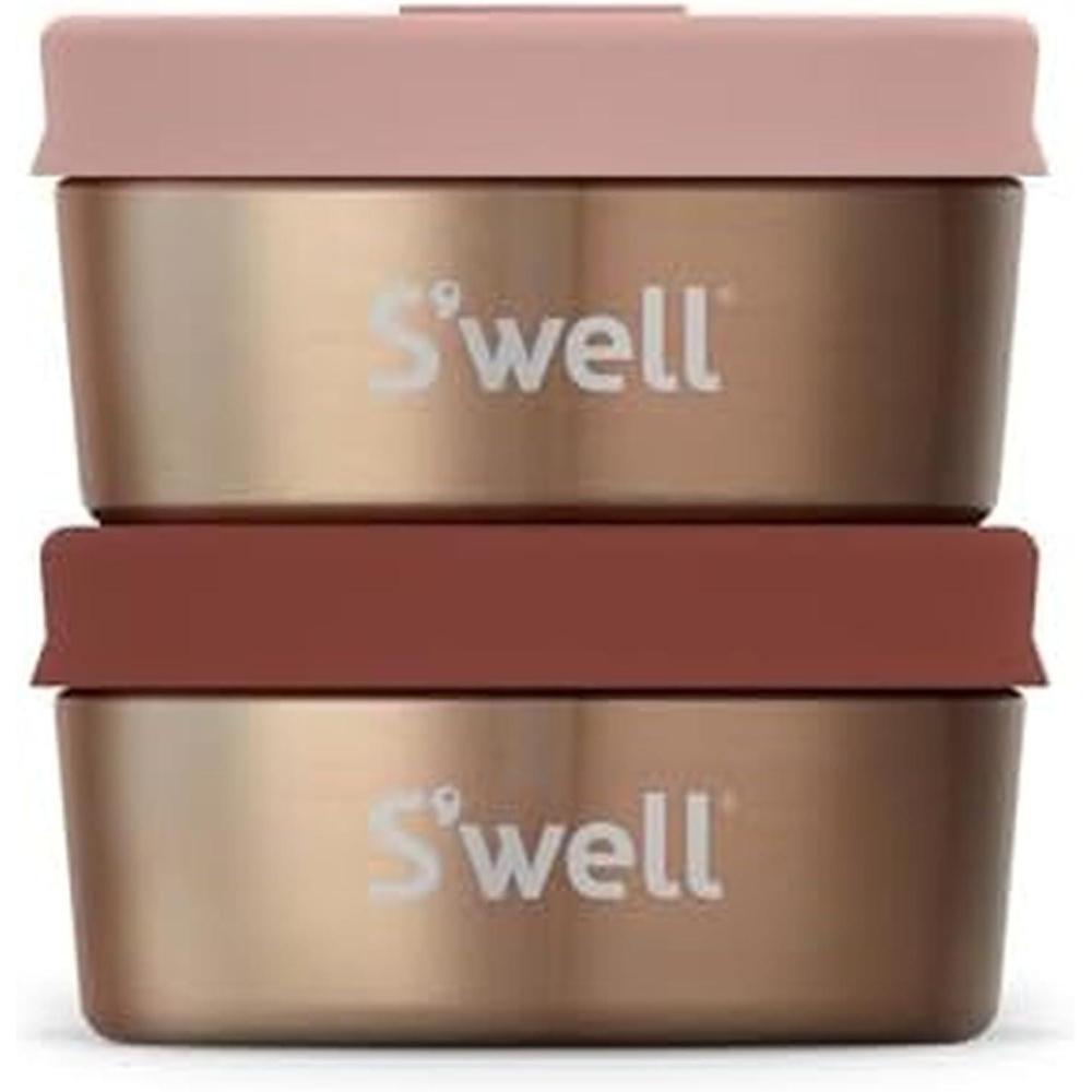 imageSwell Stainless Steel Mini Canister Set of Two 2oz Pink And Mauve Pyrite Single Walled Durable Construction Leakproof Silicone Lids Dishwasher SafeSkyMatcha Silver Lining