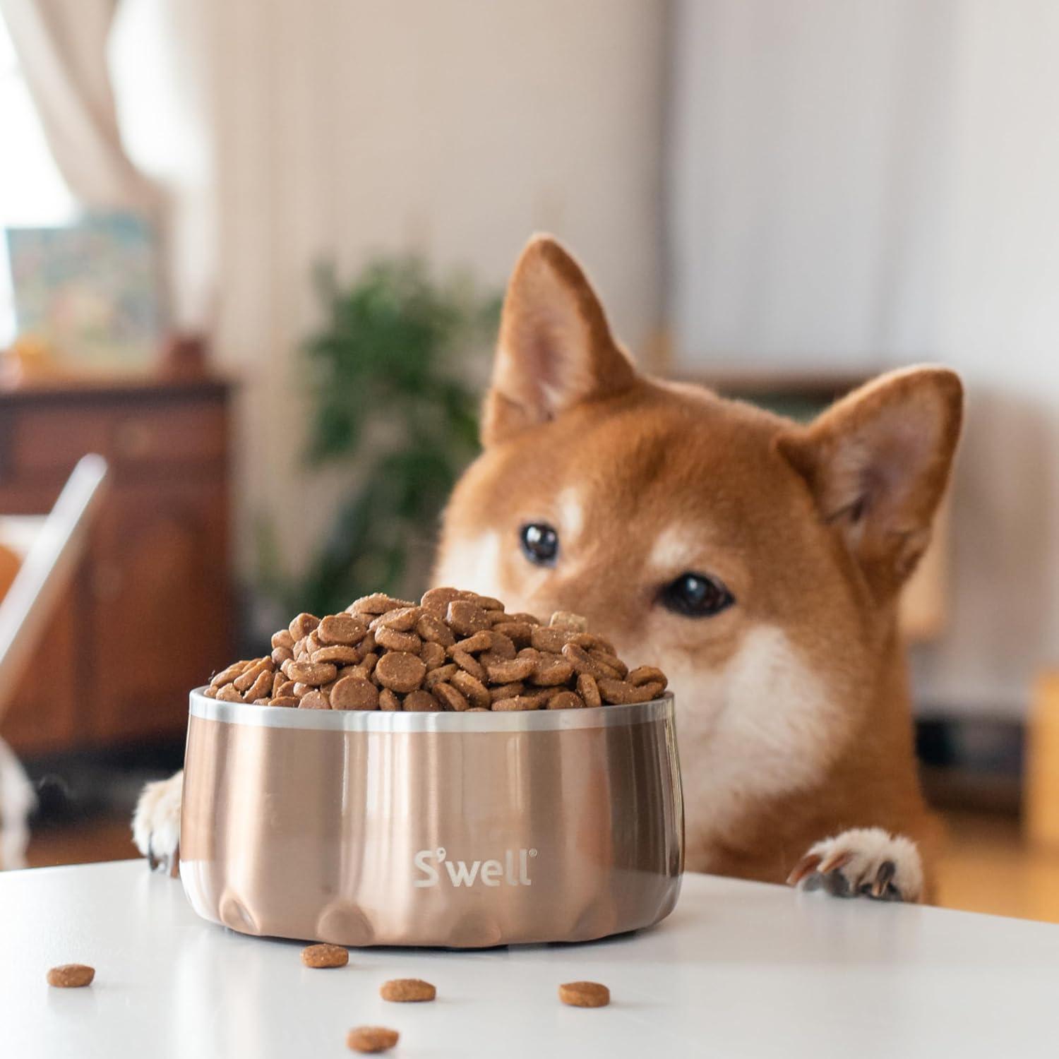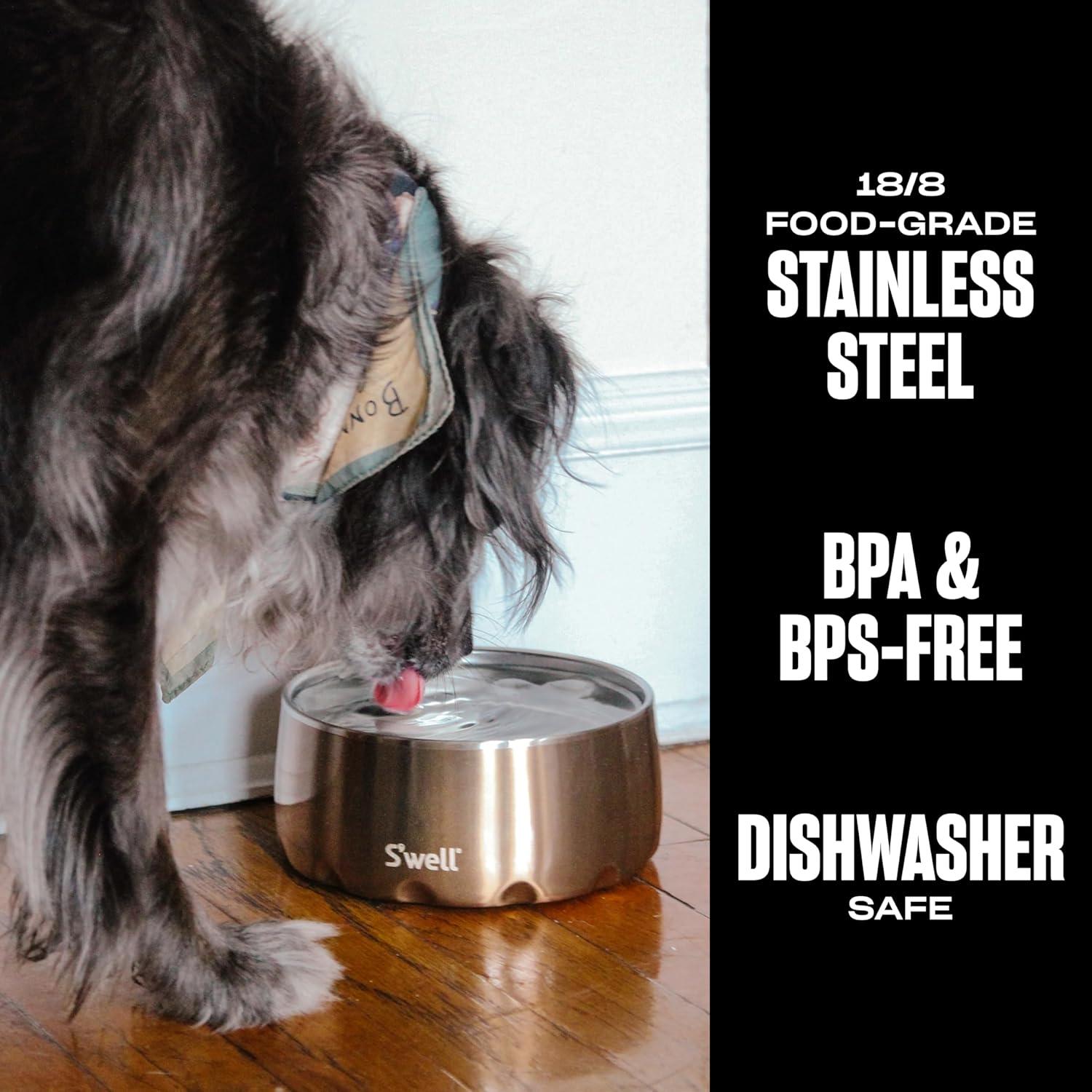 FOR FOUR LEGGED FRIENDS: S’well 32oz stainless steel Pet Bowl. Perfect for food-loving, water-gulping four-legged friends. Timeless design to keep dogs fed and hydrated in style. Dishwasher safe.