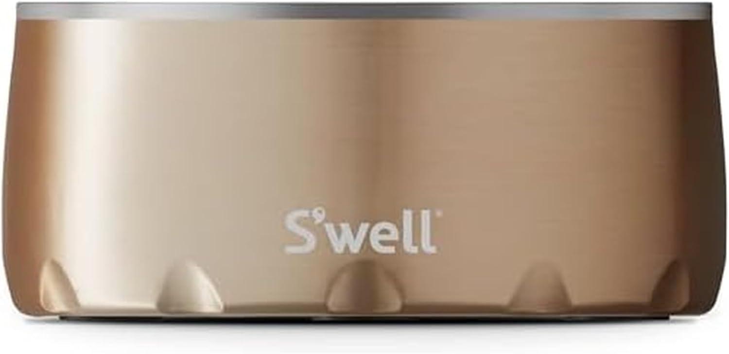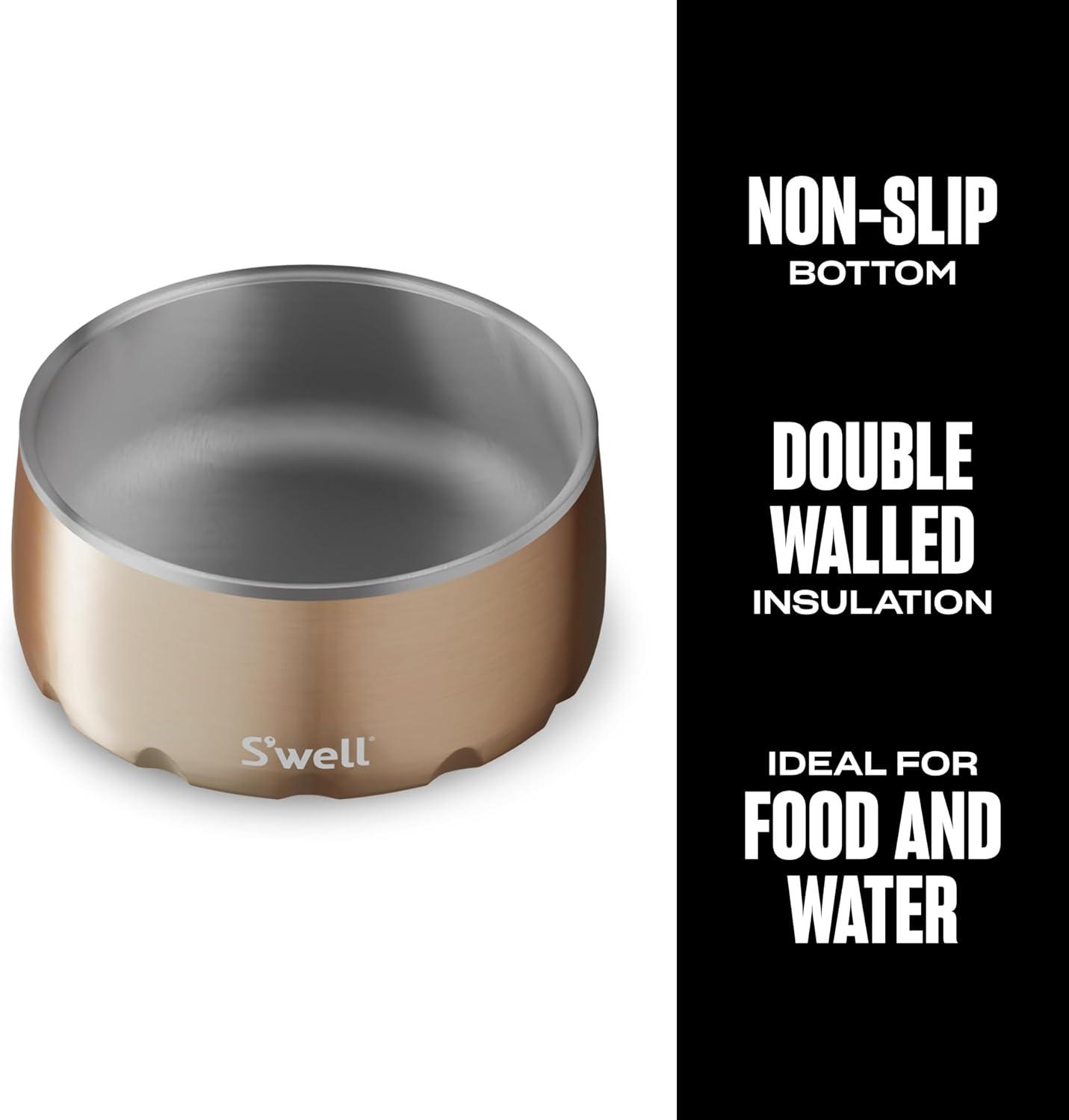 S'well Stainless Steel Pet Bowl, 32oz, Teakwood, for Small to Medium Size Dogs, Mess Free Design with Non Slip Rubber Bottom, Dishwasher Safe, BPA Free(Pyrite)
