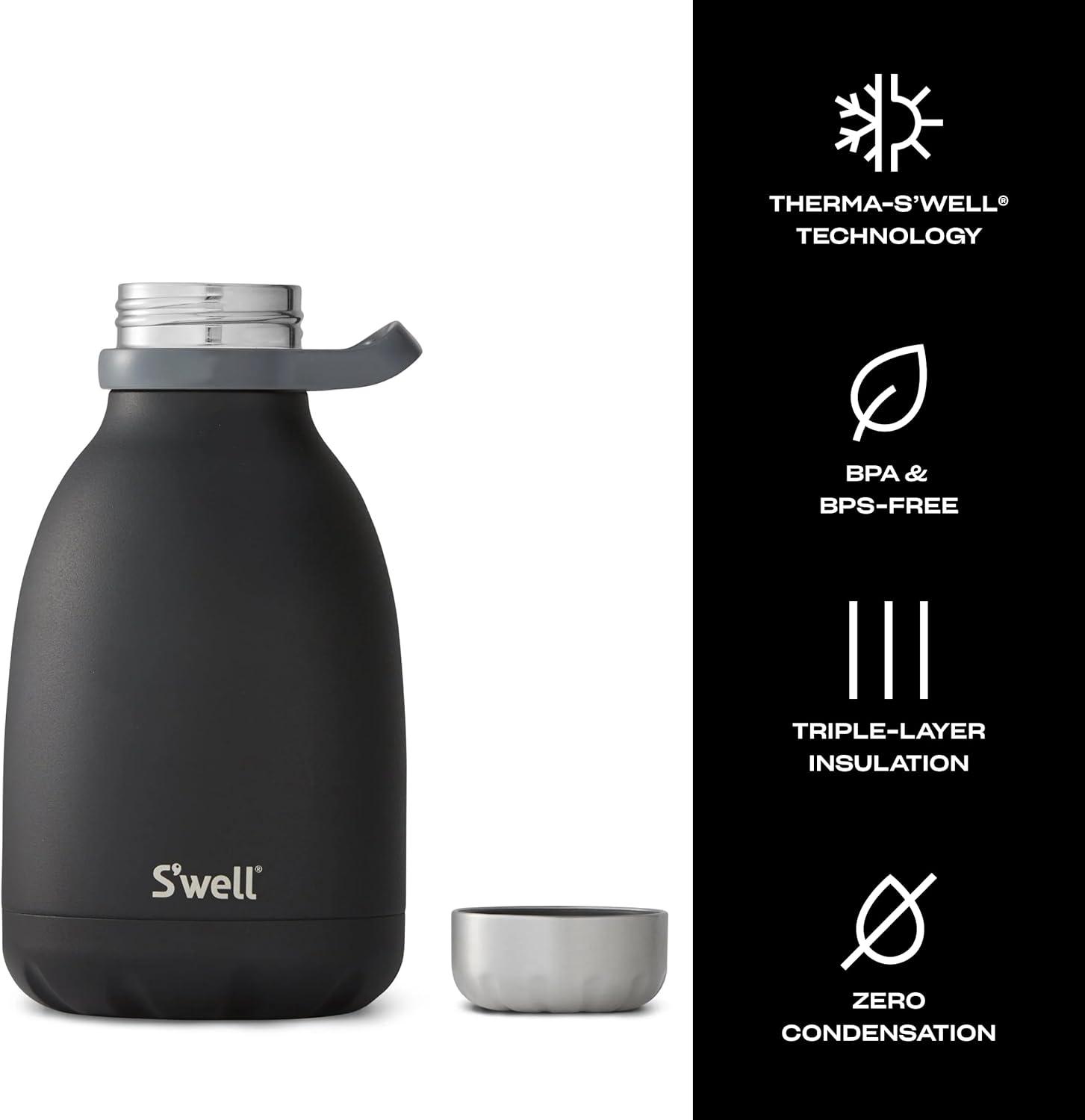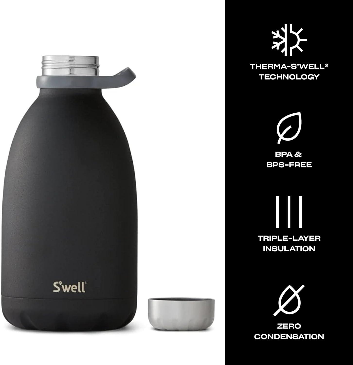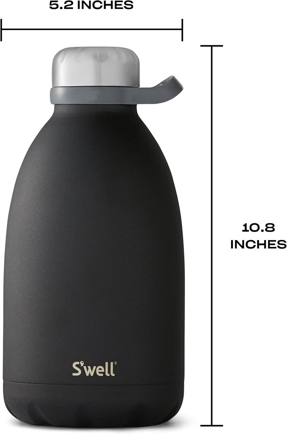 S'well Stainless Steel Roamer Bottle-64 Fl Oz-Teakwood Triple-Layered Vacuum-Insulated Containers Keeps Drinks Cold for 72 Hours and Hot for 24-BPA-Free Travel Water Bottle, 64oz(Onyx)