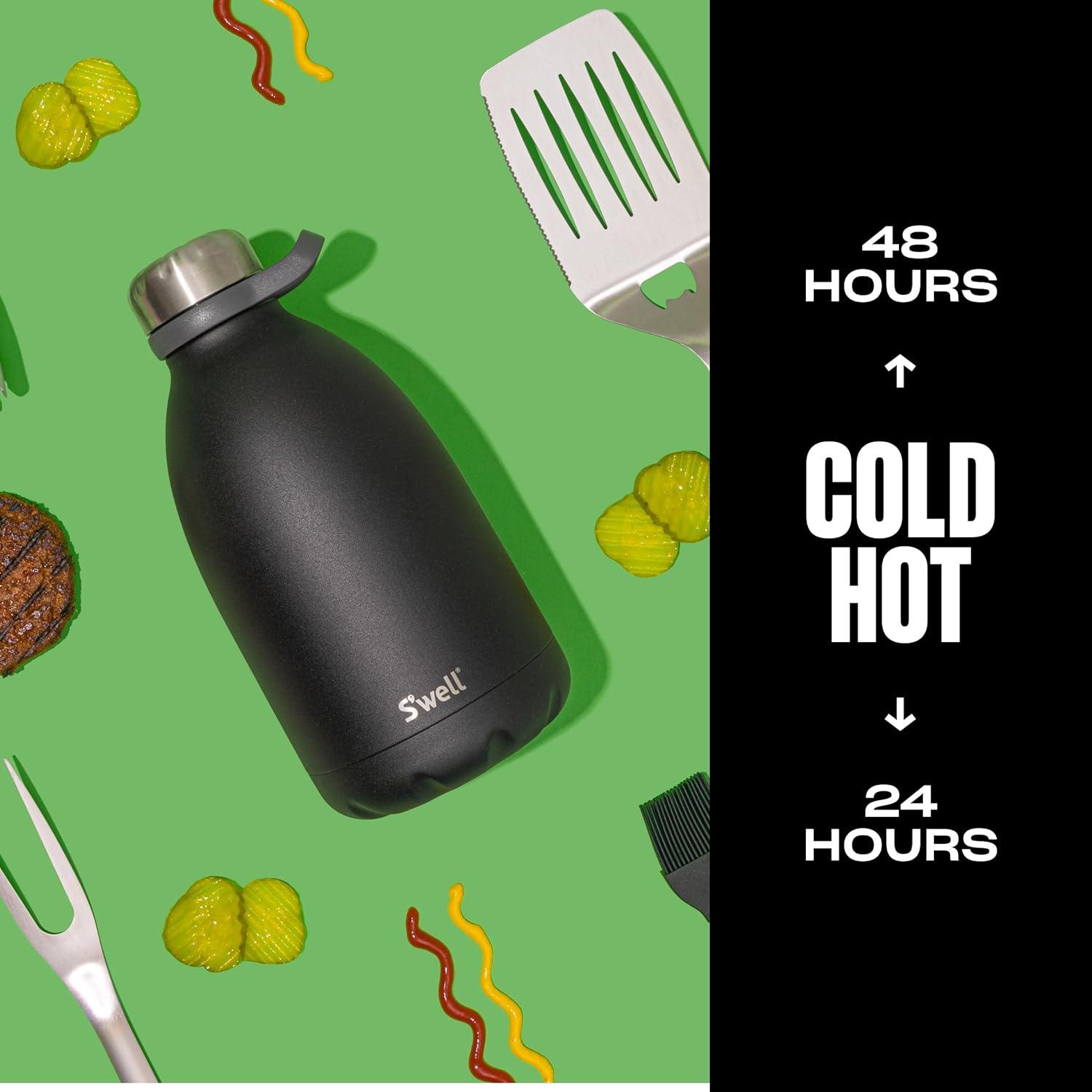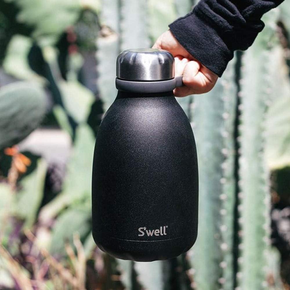S’well Stainless Steel Roamer Bottle-64 Fl Oz-Teakwood Triple-Layered Vacuum-Insulated Containers Keeps Drinks Cold for 72 Hours and Hot for 24-BPA-Free Travel Water Bottle, 64oz(Onyx)