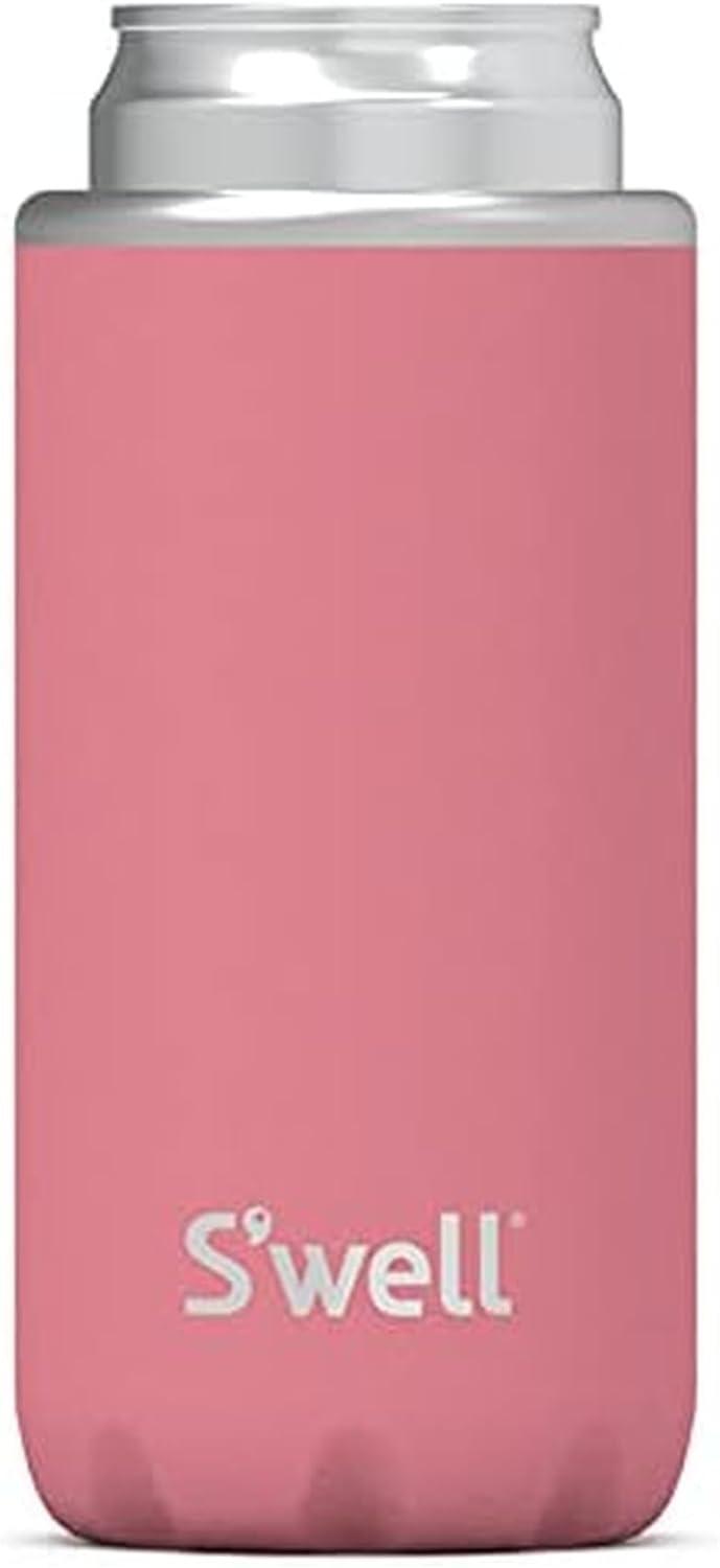 TRIPLE-LAYERED INSULATION: S’well Slim Drink Chiller with stainless steel. Fits slim 12oz cans and bottle. Triple-layered, vacuum-insulated construction. Exclusive Therma-S’well Technology keeps drinks cold for up to 6 hours.