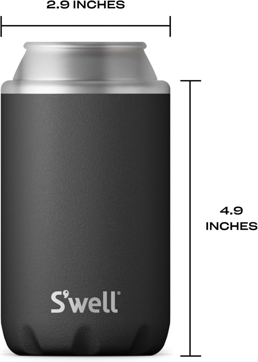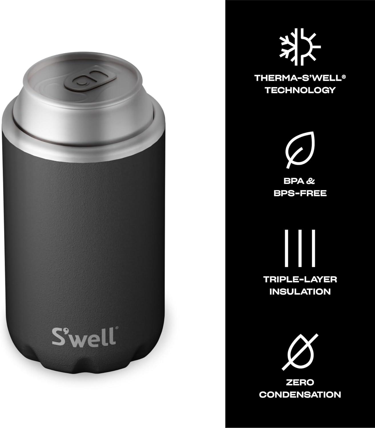 TRIPLE-LAYERED INSULATION: S’well Slim Drink Chiller with stainless steel. Fits slim 12oz cans and bottle. Triple-layered, vacuum-insulated construction. Exclusive Therma-S’well Technology keeps drinks cold for up to 6 hours.