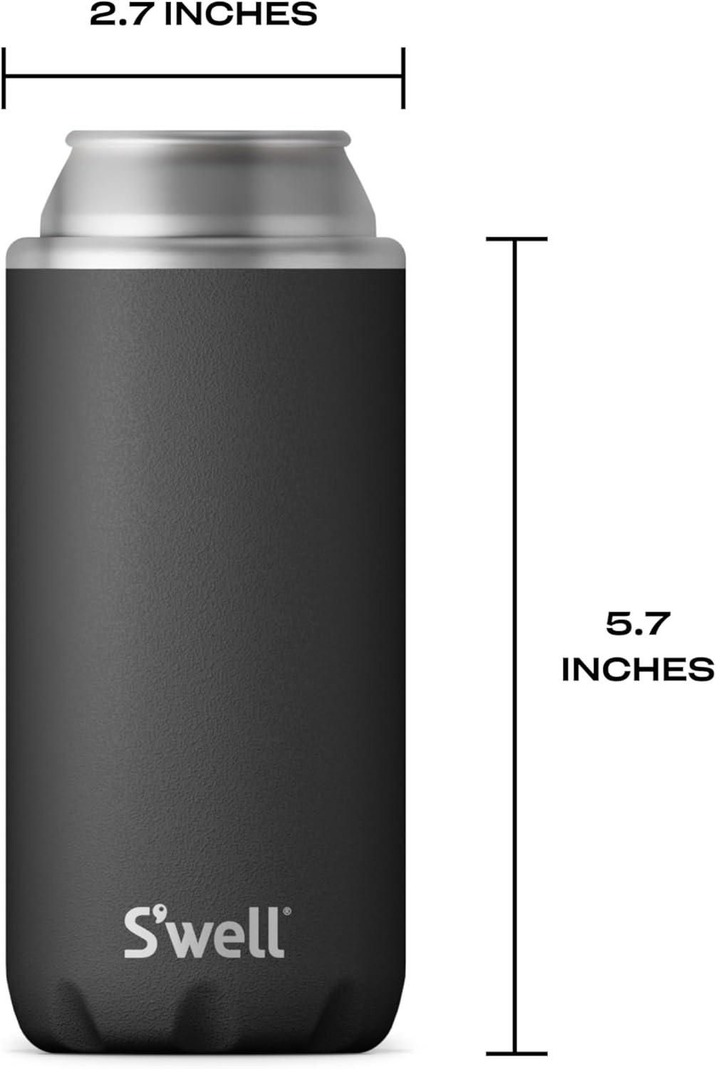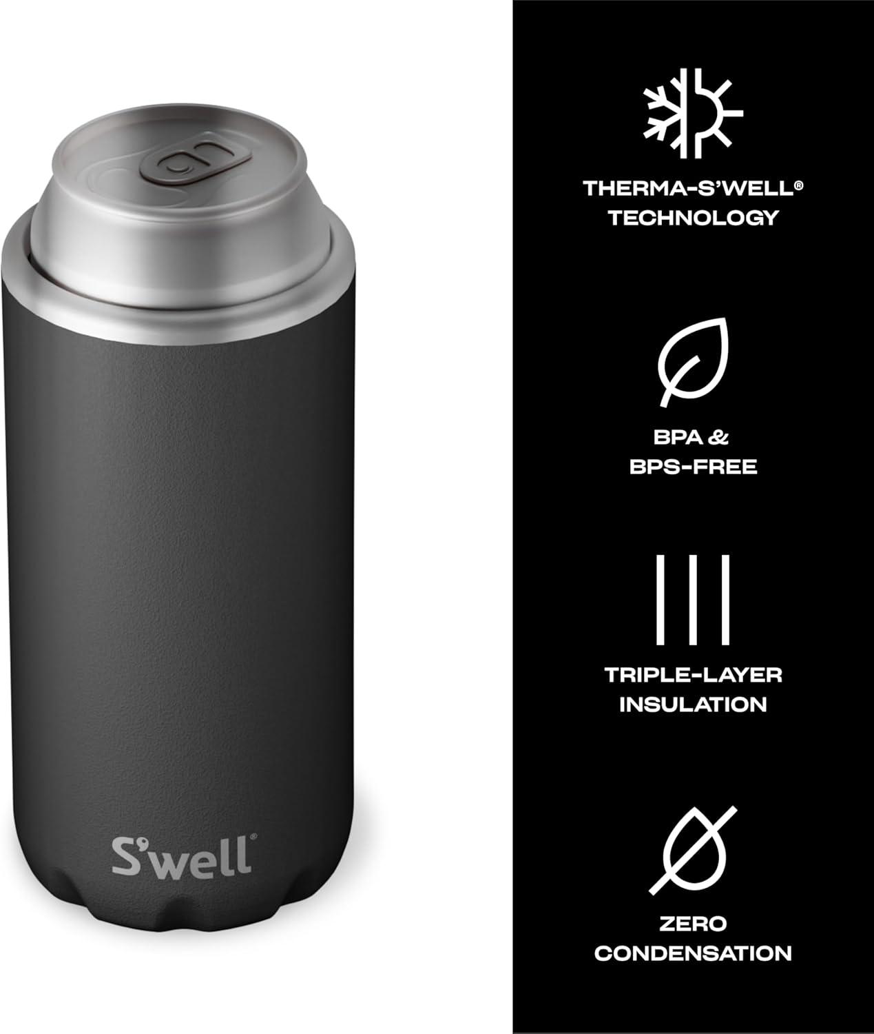 S'well Stainless Steel Slim Drink Chiller, Fits Slim 12oz Cans and Bottles, Onyx, Triple Layered Vacuum Insulated Container Keeps Drinks Cold for Up To 6 Hours, BPA Free