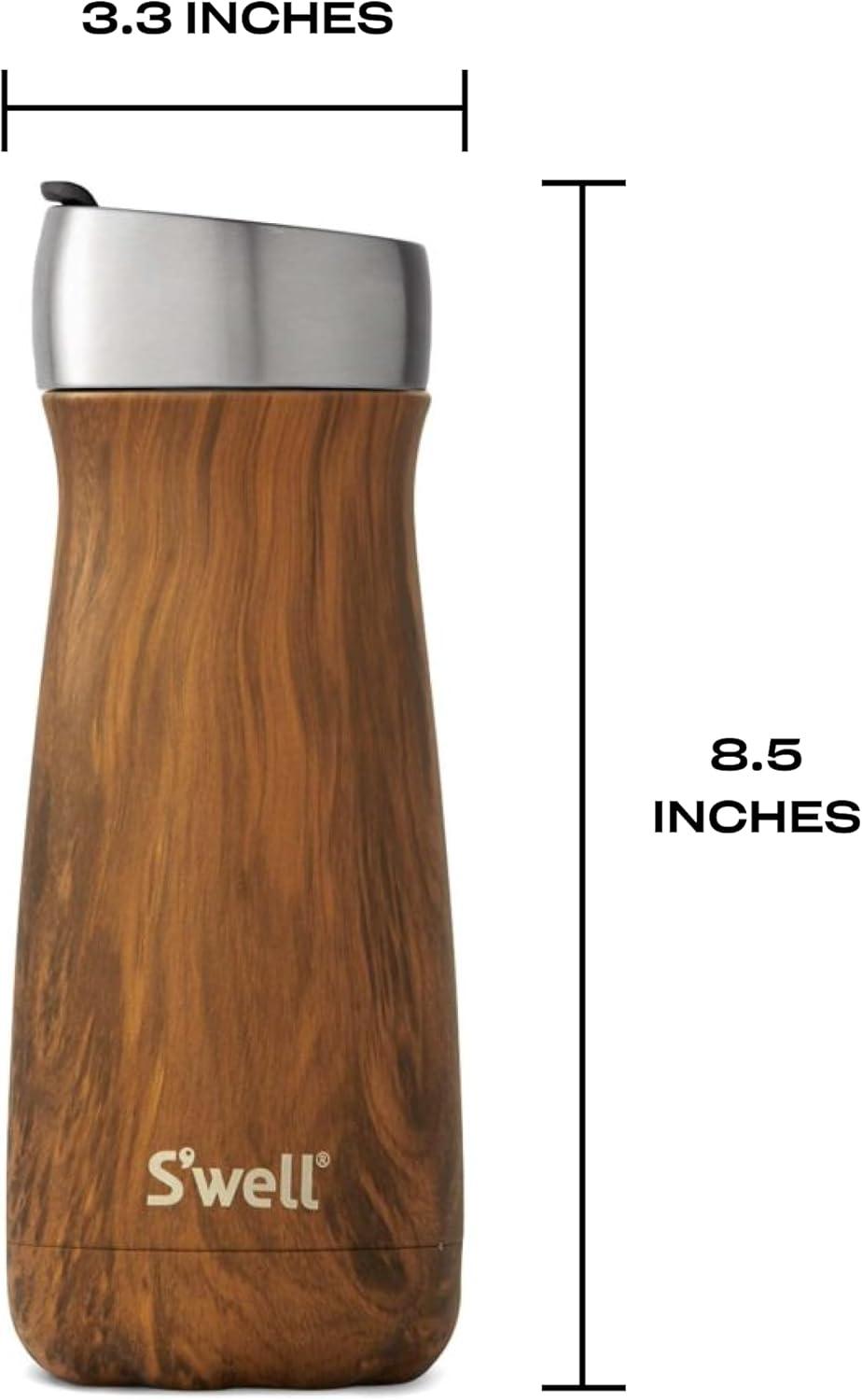 S’well Stainless Steel Traveler, 20oz, Azurite, Triple Layered Vacuum Insulated Containers Keeps Drinks Cold for 36 Hours and Hot for 15, BPA Free, Easy Carrying On the Go(Teakwood)