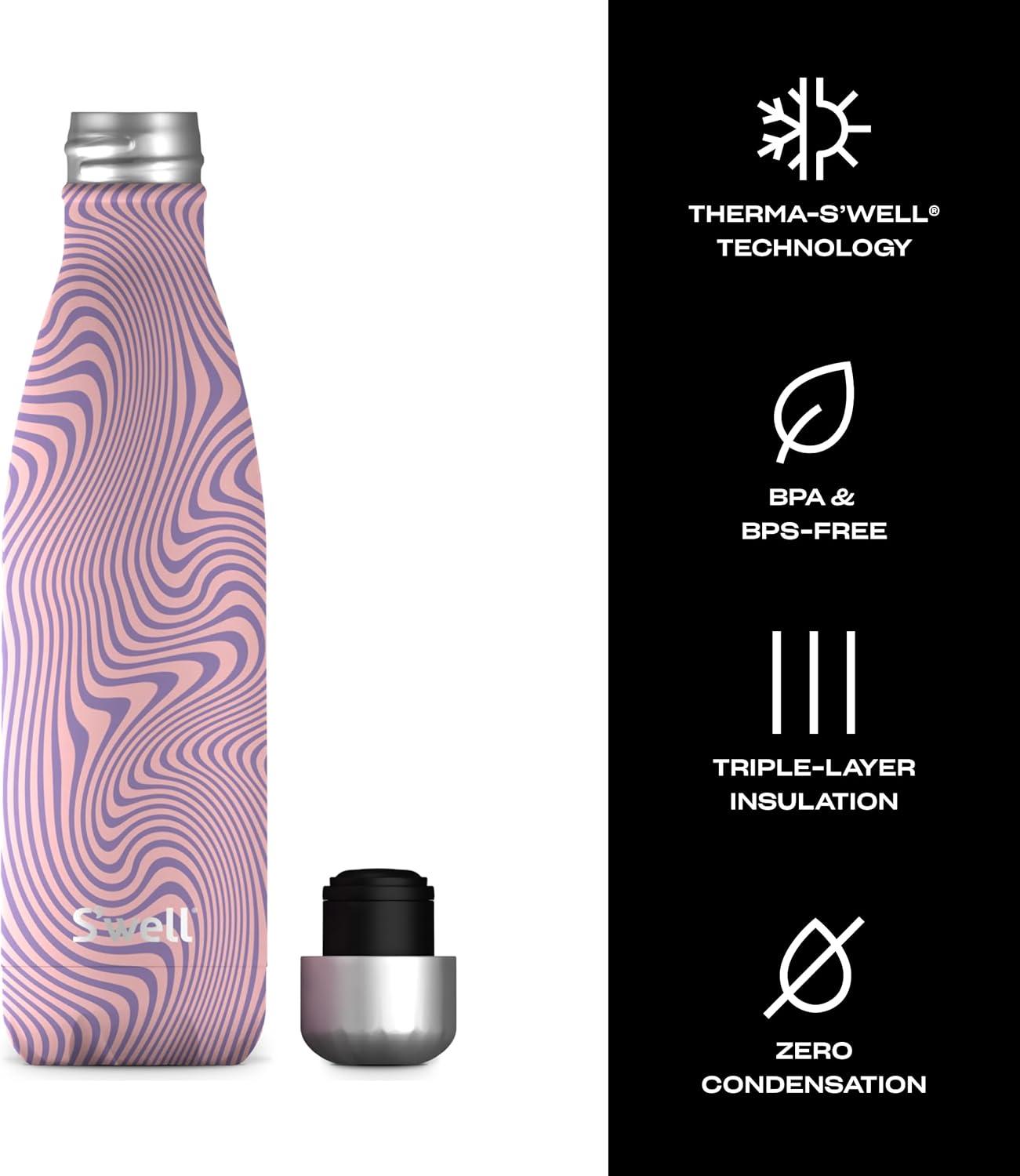 S'well Stainless Steel Water Bottle, 17oz, Lavender Swirl, Triple Layered Vacuum Insulated Containers Keeps Drinks Cold for 36 Hours and Hot for 18, BPA Free, Perfect for On the Go