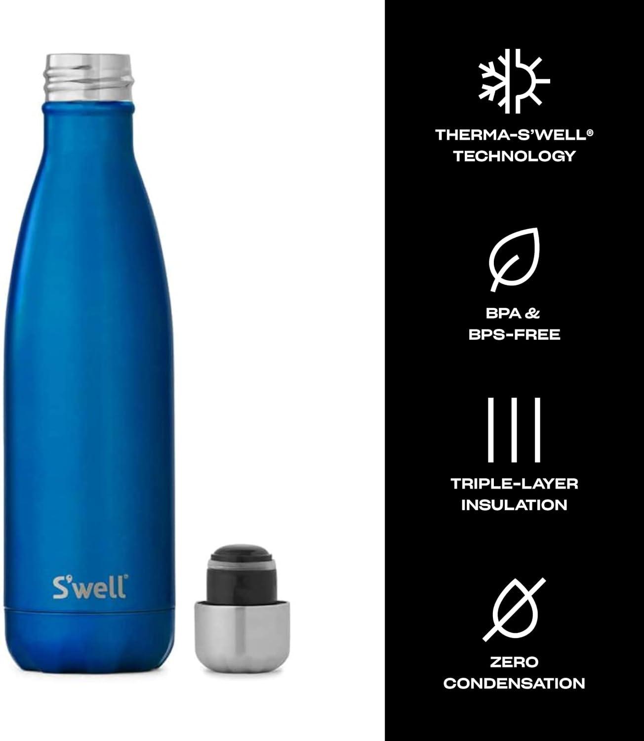 S’well Stainless Steel Water Bottle, 17oz, Ocean Blue, Triple Layered Vacuum Insulated Containers Keeps Drinks Cold for 36 Hours and Hot for 18, BPA Free, Perfect for On the Go(Ocean Blue)