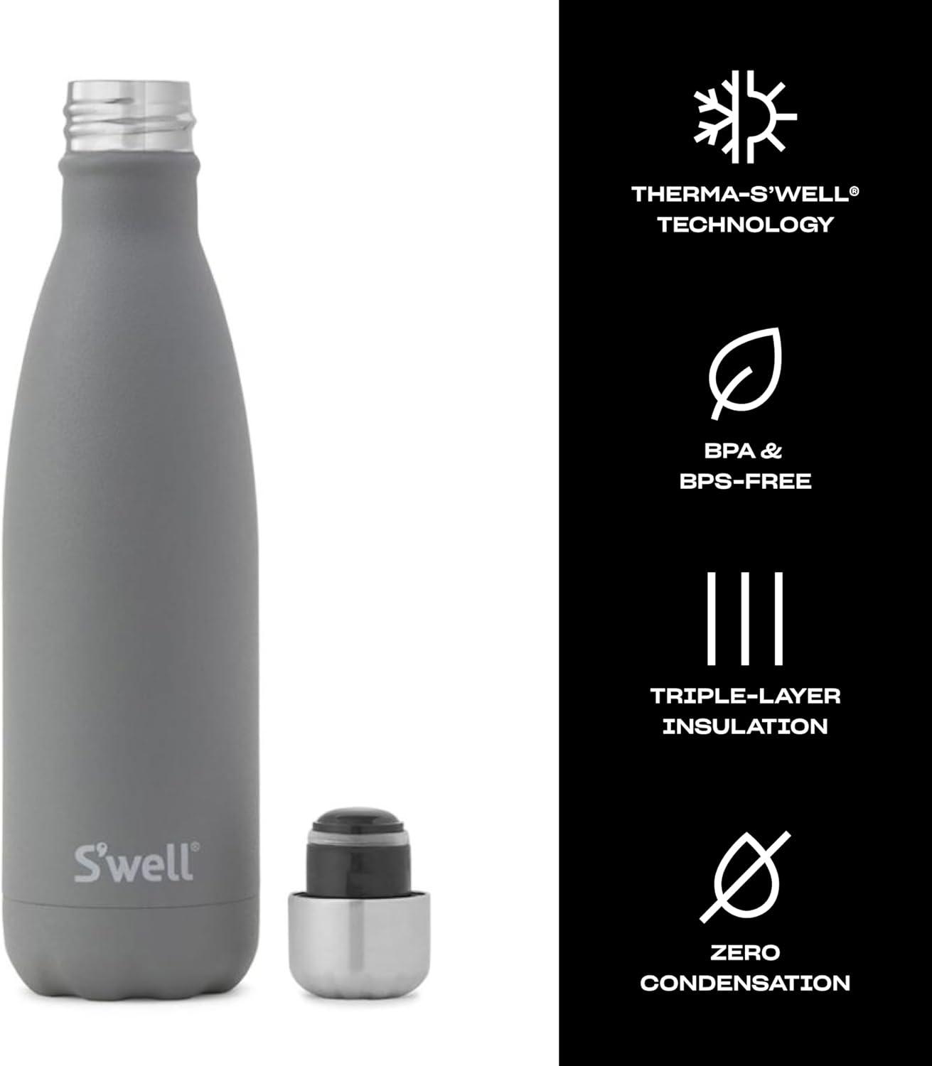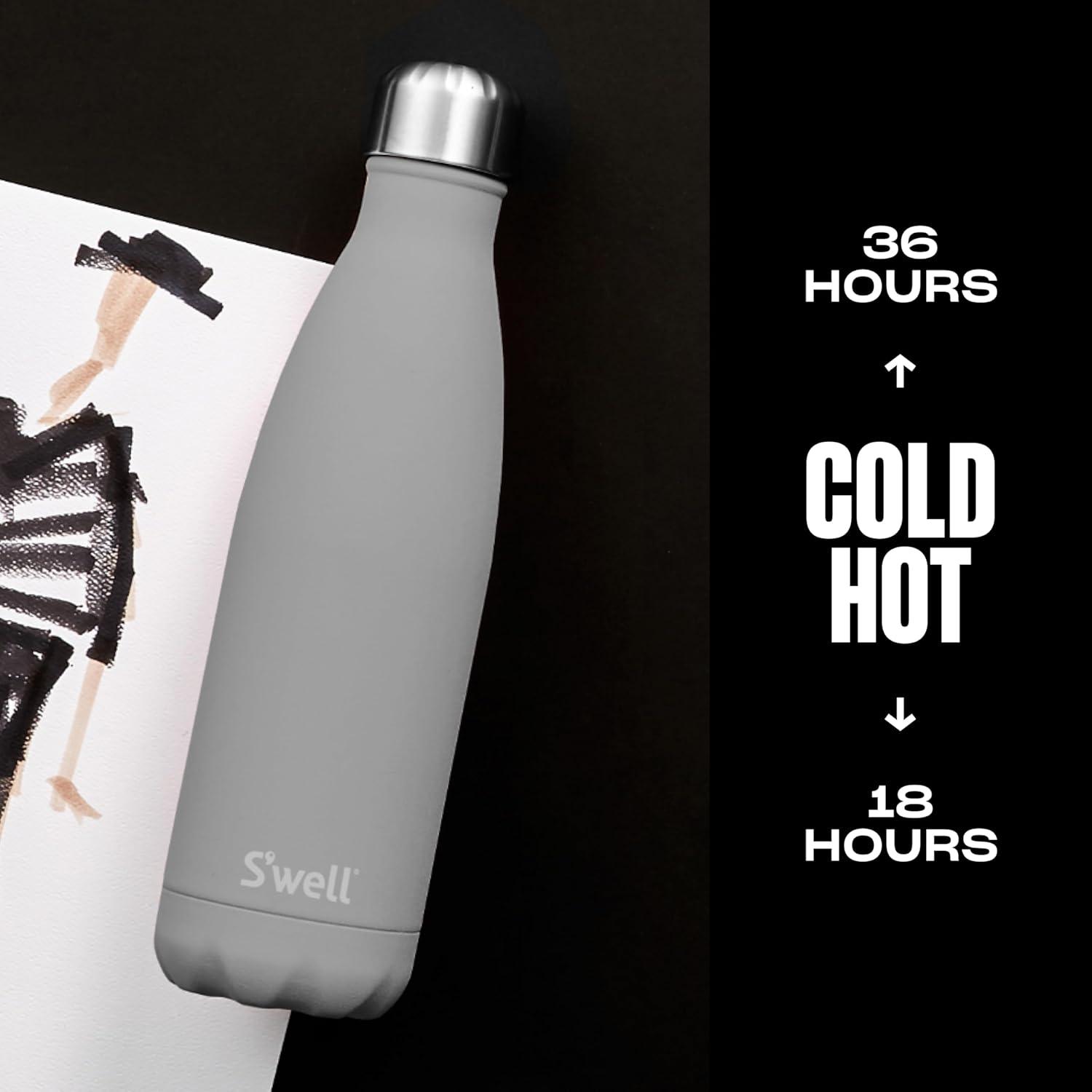 TRIPLE-LAYERED INSULATION: S’well 17oz Bottle with stainless steel. Triple-layered, vacuum-insulated construction. Exclusive Therma-S’well Technology keeps beverages cold for 36 hours and hot for 18. Sleek and beautifully crafted. Hand-wash only