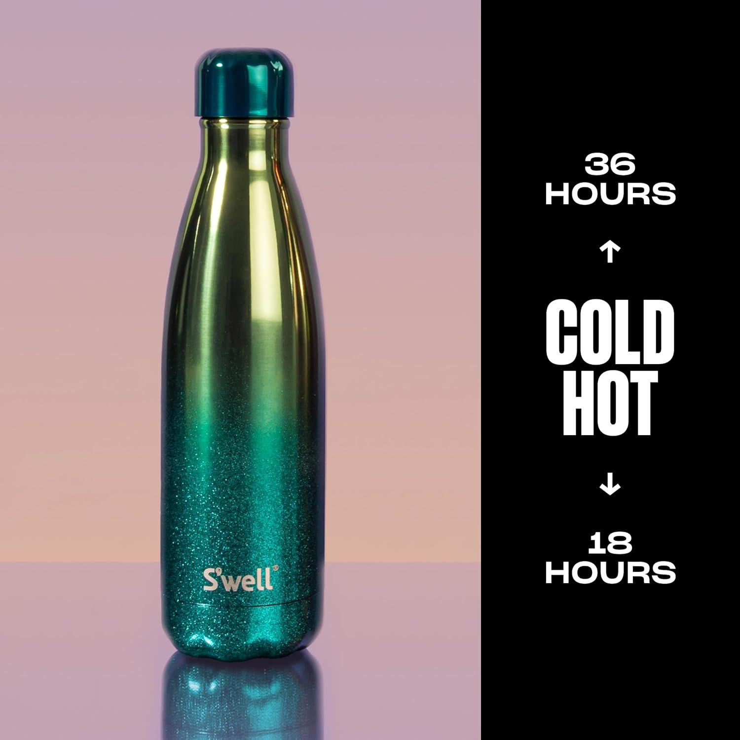 TRIPLE-LAYERED INSULATION: S’well 17oz Bottle with stainless steel. Triple-layered, vacuum-insulated construction. Exclusive Therma-S’well Technology keeps beverages cold for 36 hours and hot for 18. Sleek and beautifully crafted. Hand-wash only.