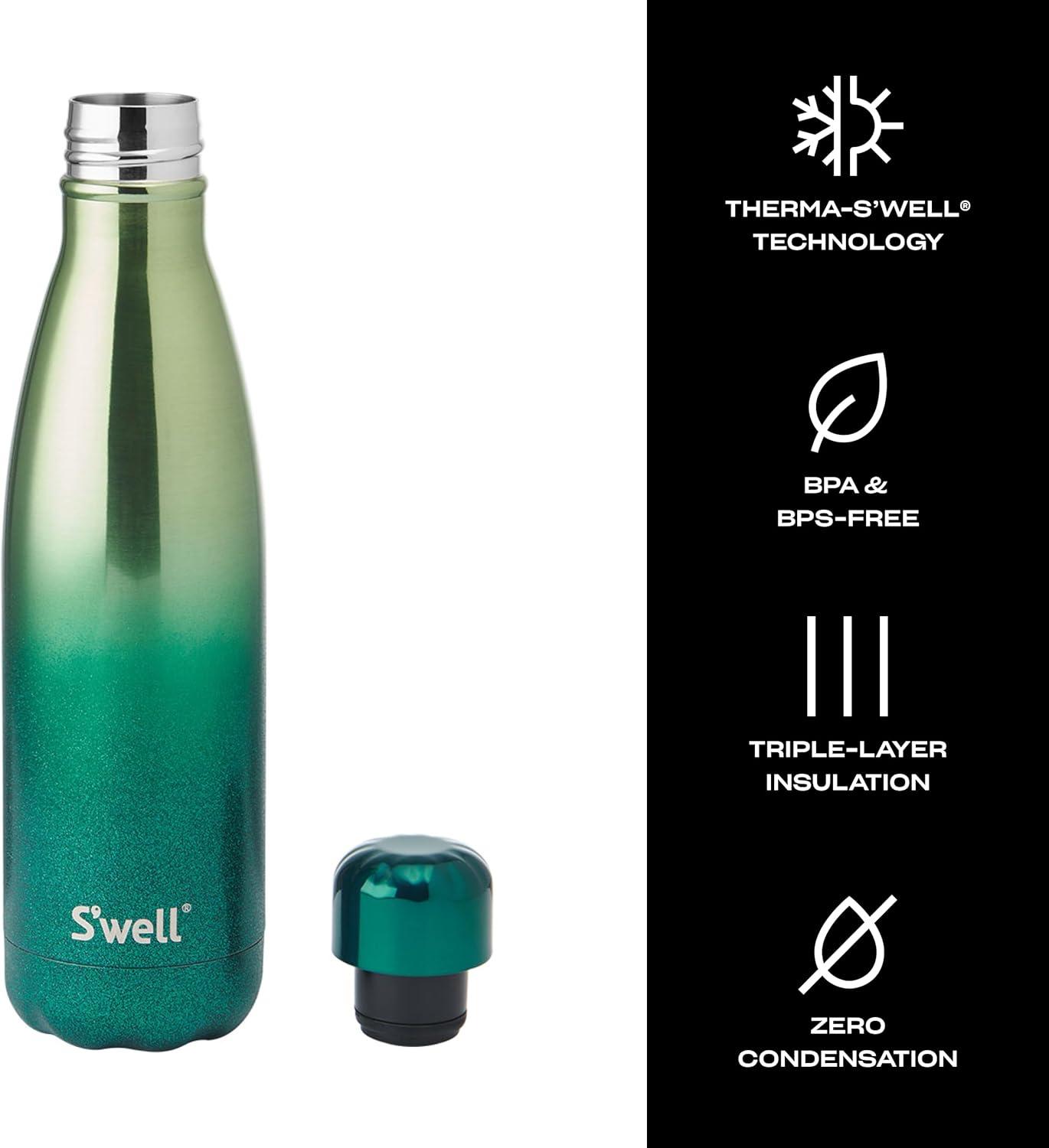 S’well Stainless Steel Water Bottle, 17oz, Yellow Gold Ombre, Triple Layered Vacuum Insulated Containers Keeps Drinks Cold for 36 Hours and Hot for 18, BPA Free, Perfect for On the Go(Gradient Emerald)