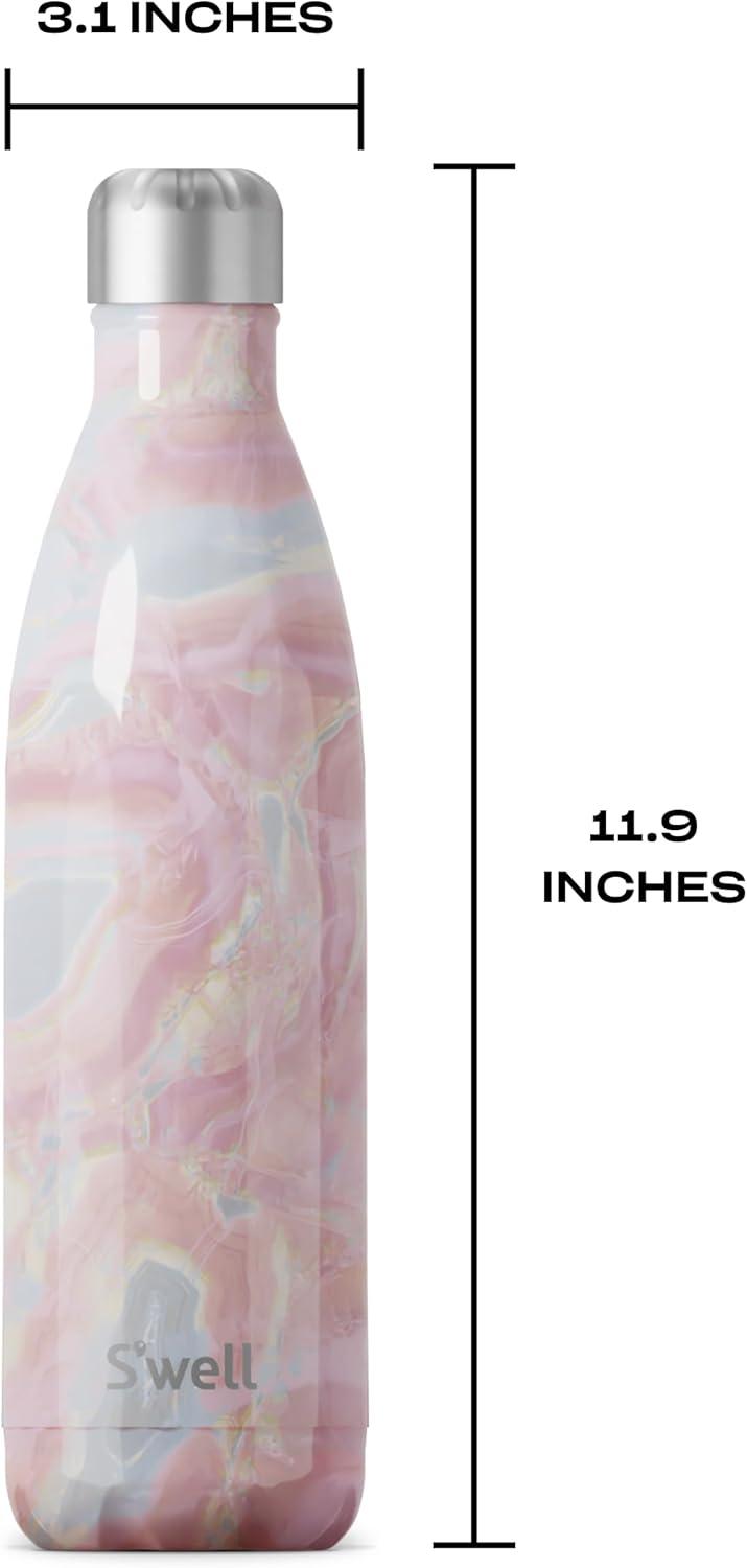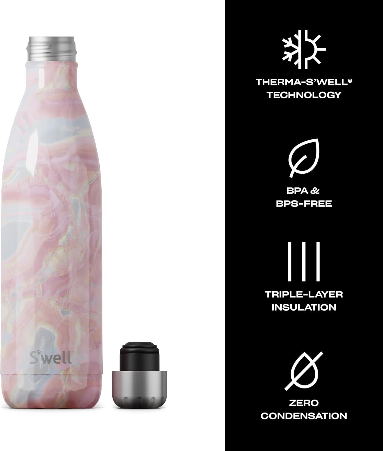 S’well Stainless Steel Water Bottle, 25oz, Silver Lining, Triple Layered Vacuum Insulated Containers Keeps Drinks Cold for 48 Hours and Hot for 24, BPA Free, Perfect for On the Go(Geode Rose)