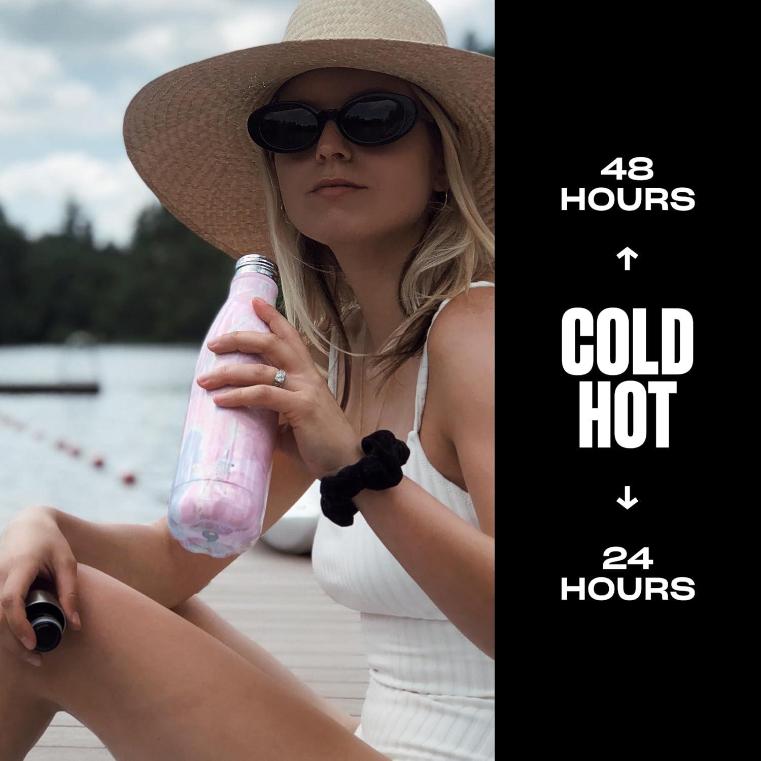 TRIPLE-LAYERED INSULATION: S’well 25oz Bottle with stainless steel. Triple-layered, vacuum-insulated construction. Exclusive Therma-S’well Technology keeps beverages cold for 48 hours and hot for 24. Sleek and beautifully crafted. Hand-wash only.