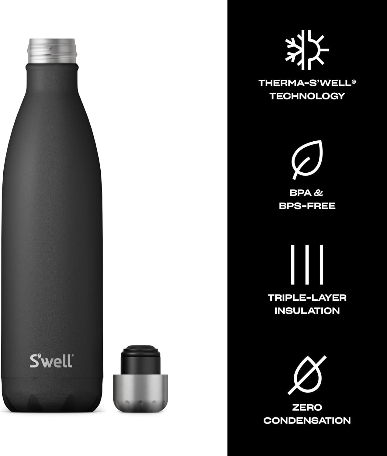 S'well Stainless Steel Water Bottle, 25oz, Silver Lining, Triple Layered Vacuum Insulated Containers Keeps Drinks Cold for 48 Hours and Hot for 24, BPA Free, Perfect for On the Go(Onyx)