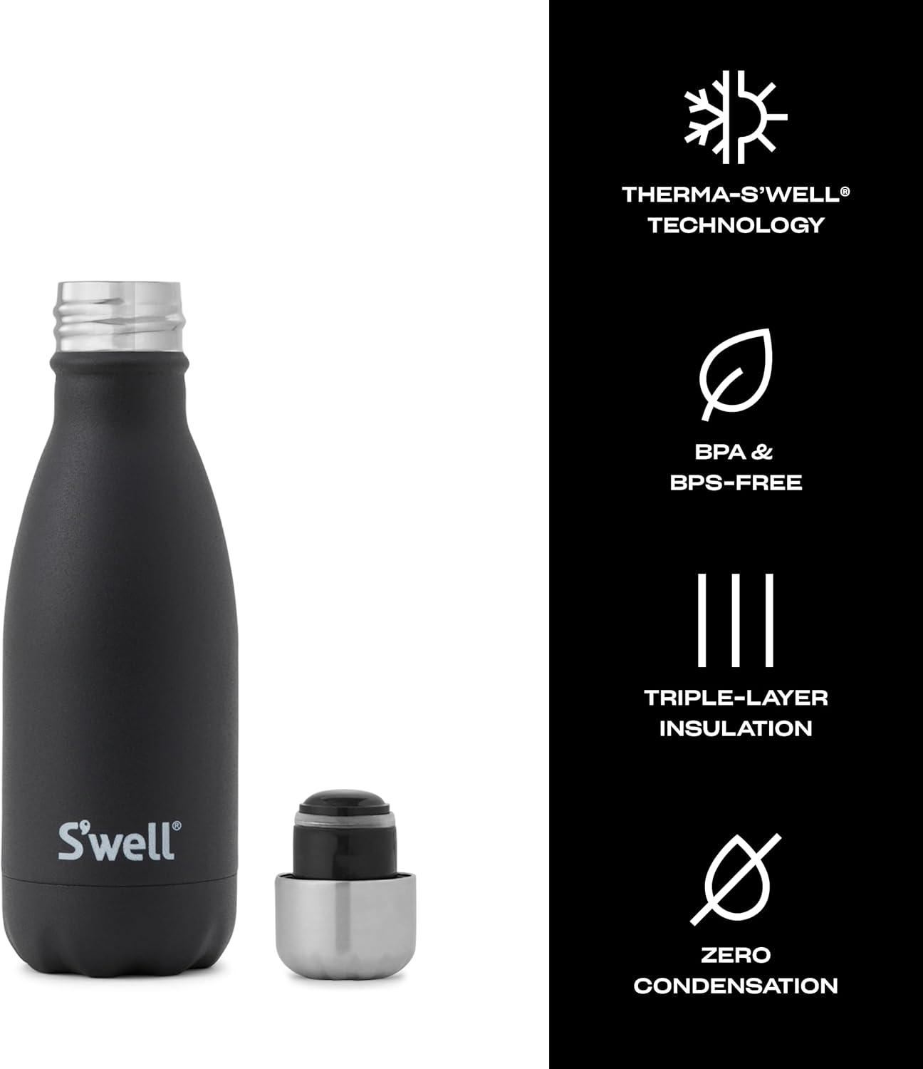 S’well Stainless Steel Water Bottle, 25oz, Silver Lining, Triple Layered Vacuum Insulated Containers Keeps Drinks Cold for 48 Hours and Hot for 24, BPA Free, Perfect for On the Go(Onyx)