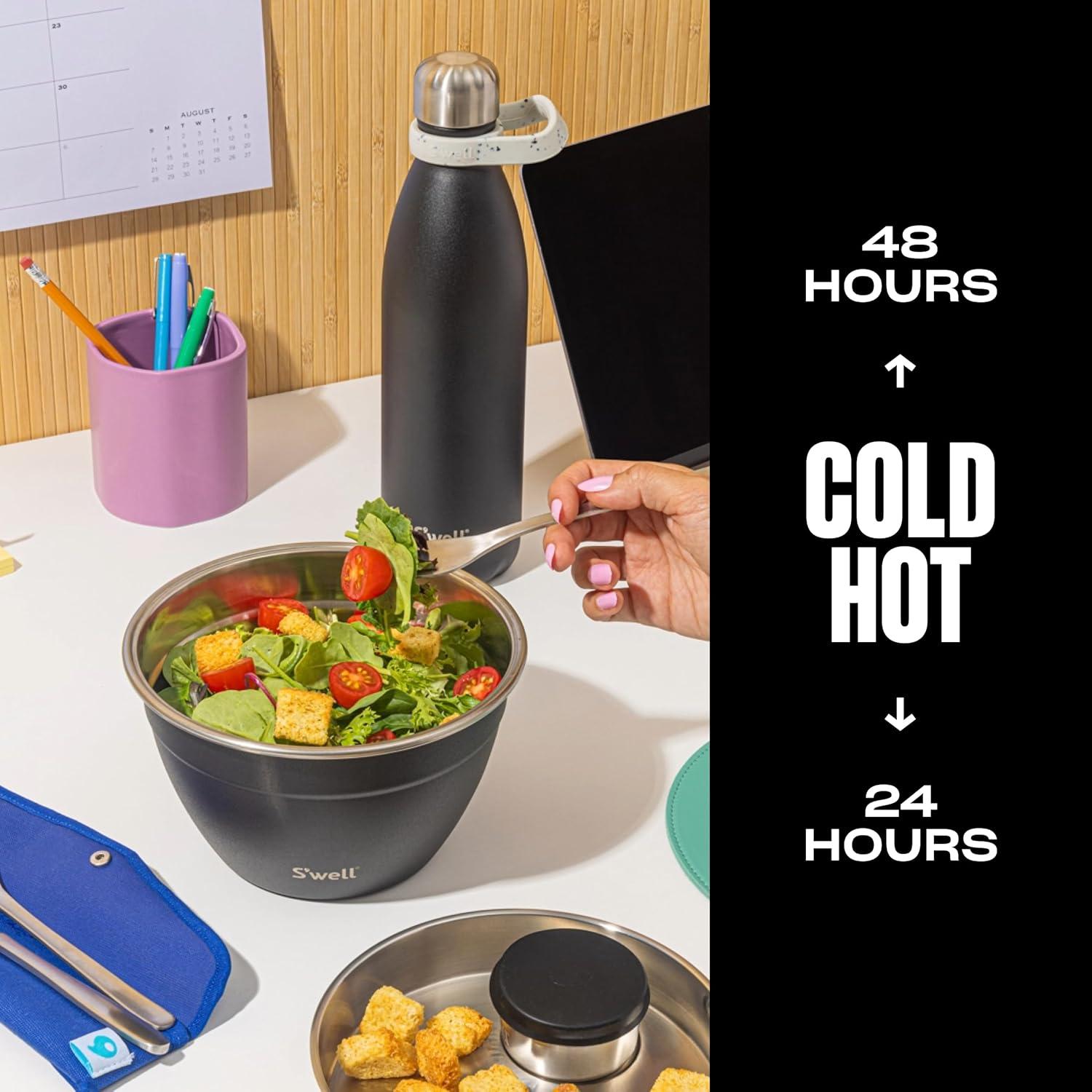 TRIPLE-LAYERED INSULATION: S’well 25oz Bottle with stainless steel. Triple-layered, vacuum-insulated construction. Exclusive Therma-S’well Technology keeps beverages cold for 48 hours and hot for 24. Sleek and beautifully crafted. Hand-wash only.