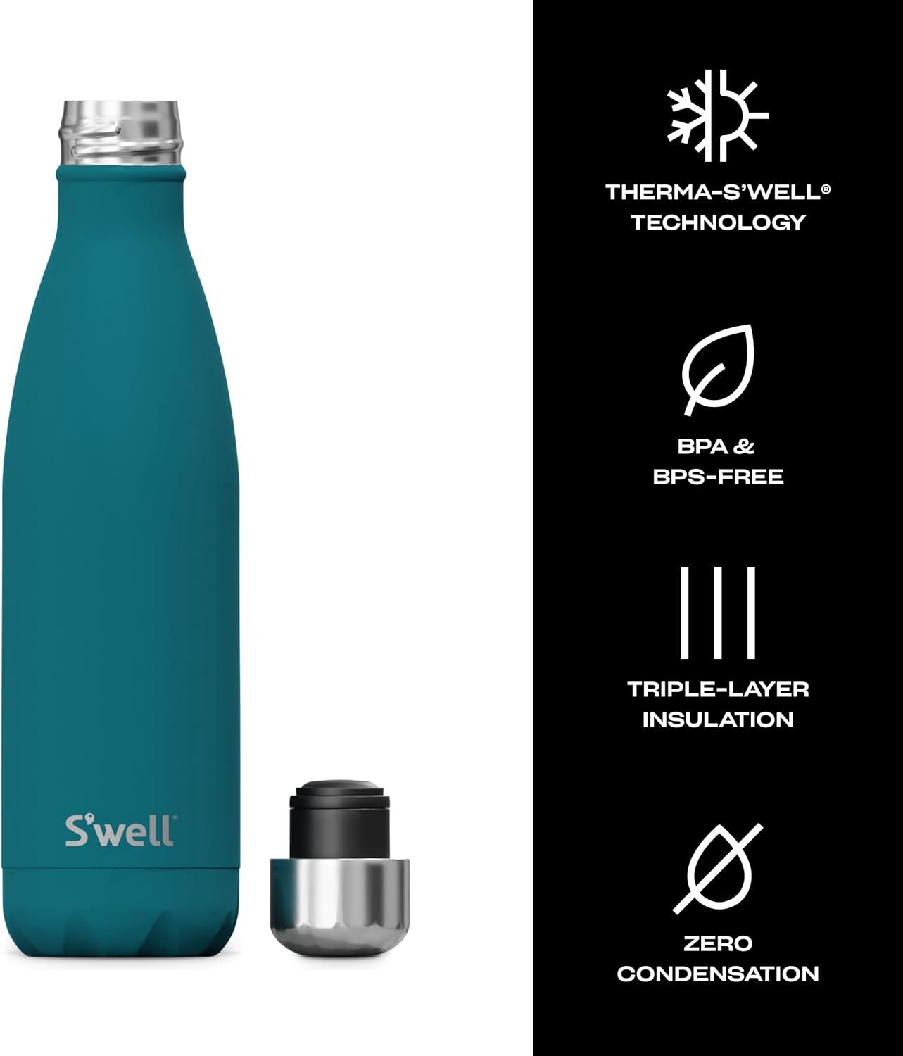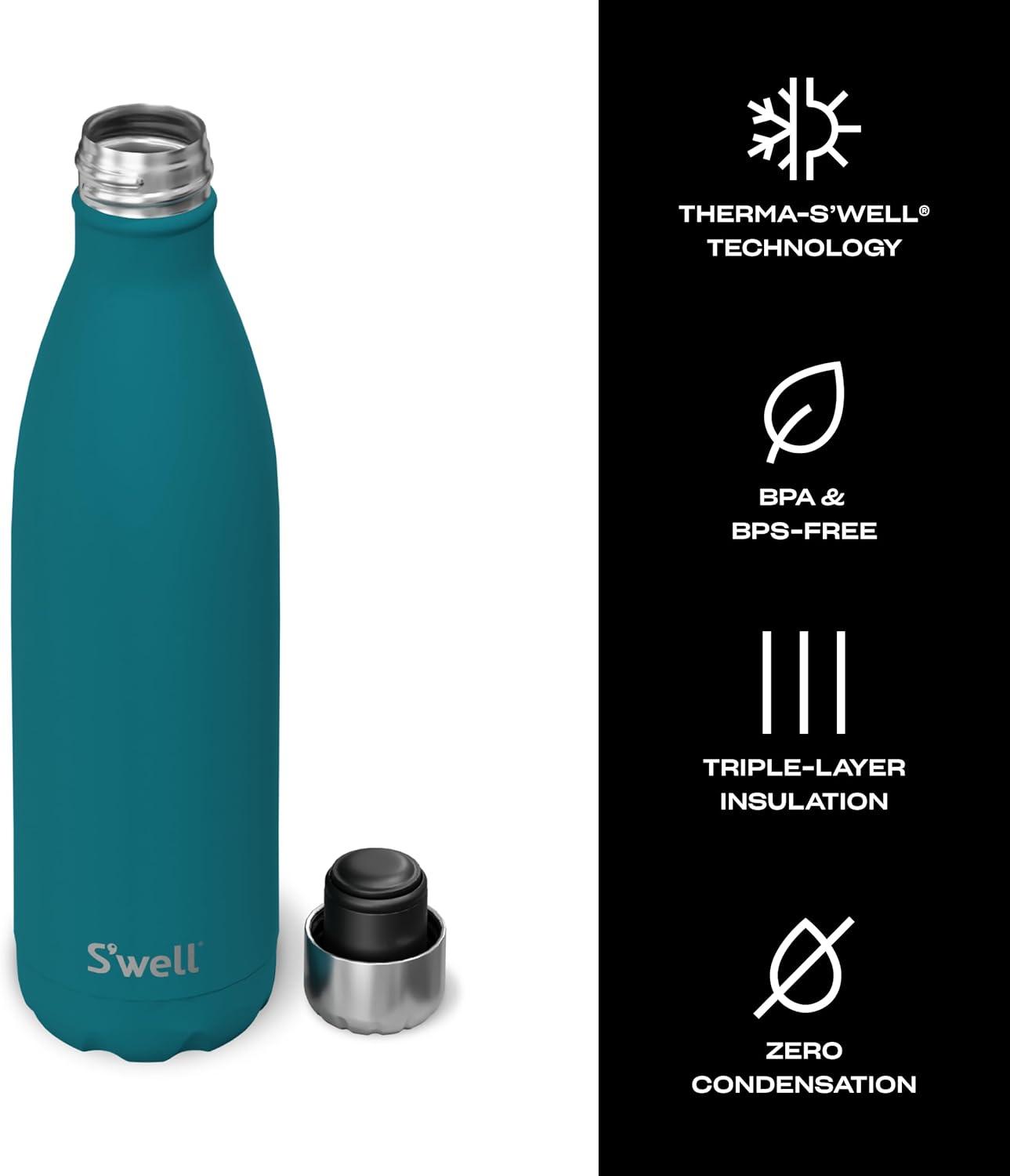 TRIPLE-LAYERED INSULATION: S’well 25oz Bottle with stainless steel. Triple-layered, vacuum-insulated construction. Exclusive Therma-S’well Technology keeps beverages cold for 48 hours and hot for 24. Sleek and beautifully crafted. Hand-wash only.